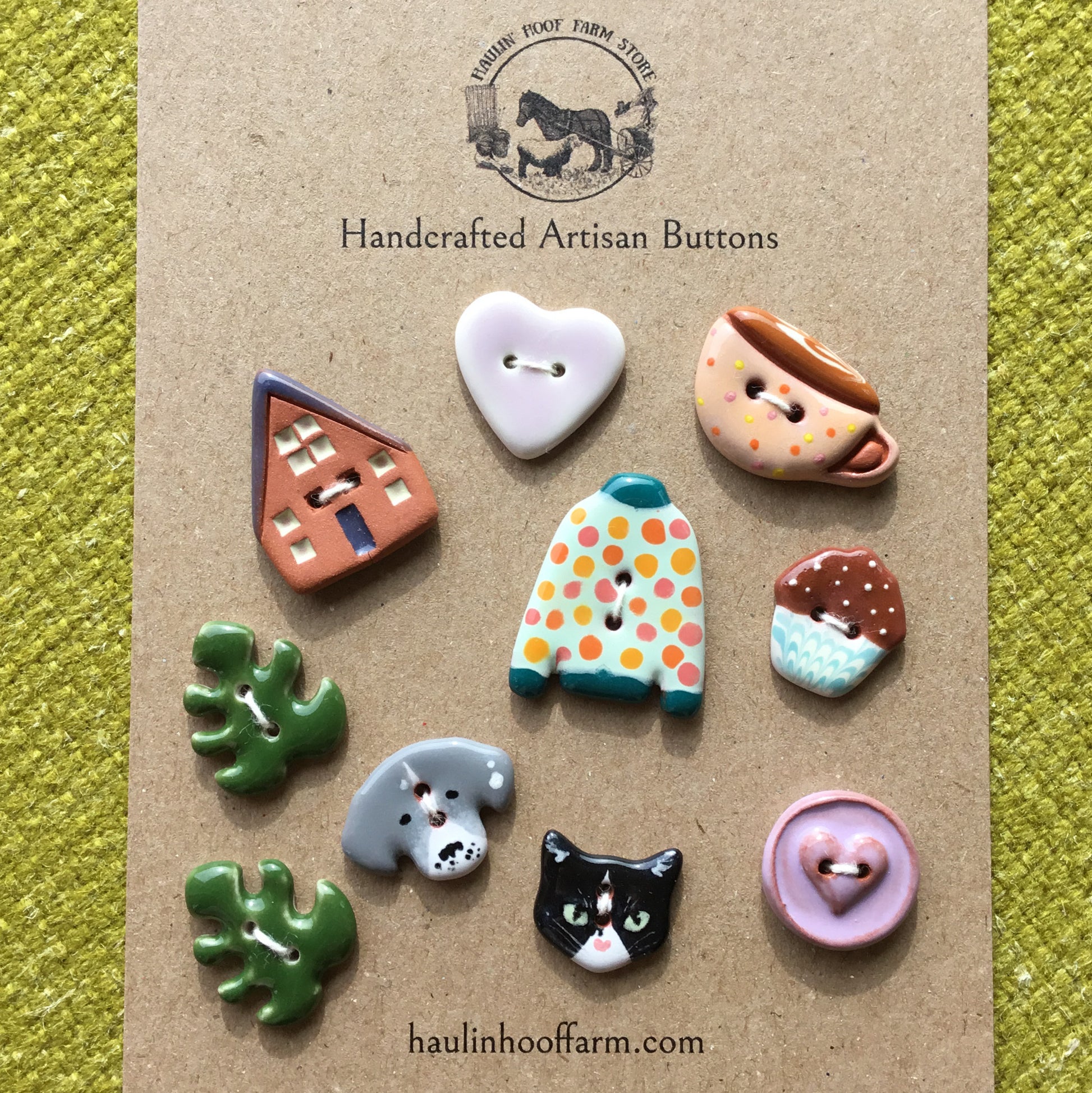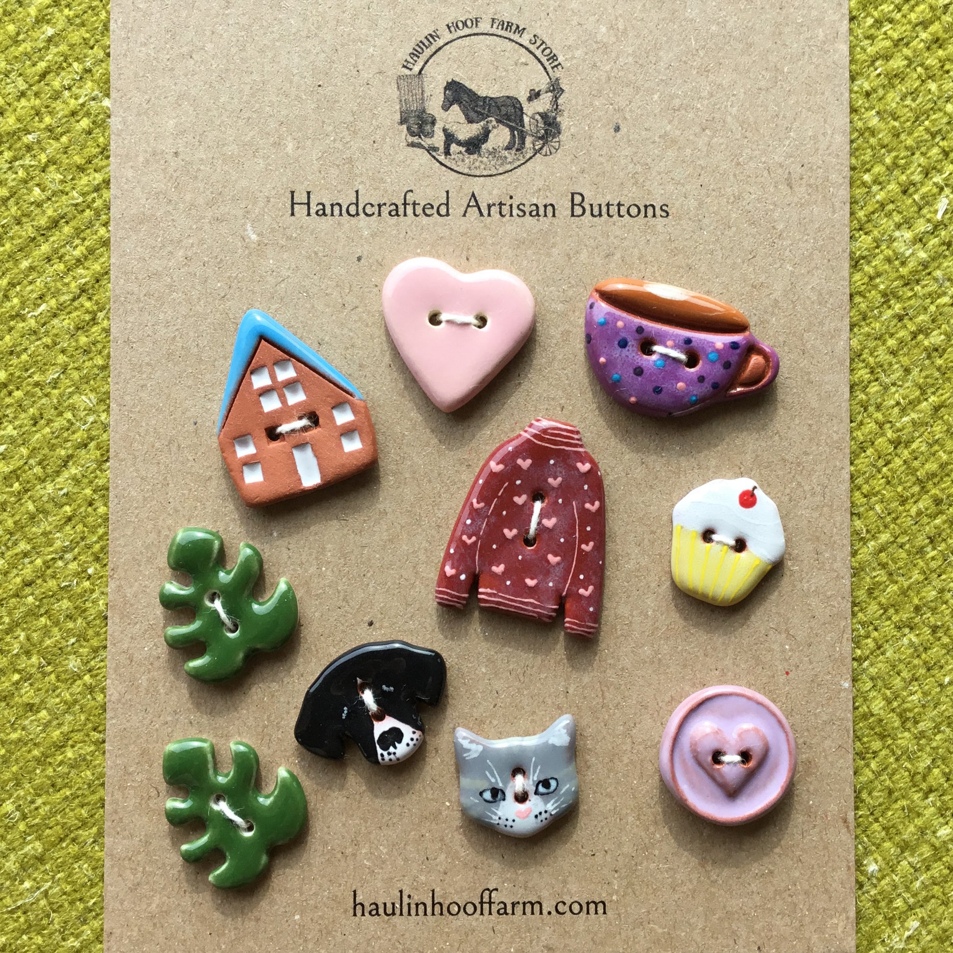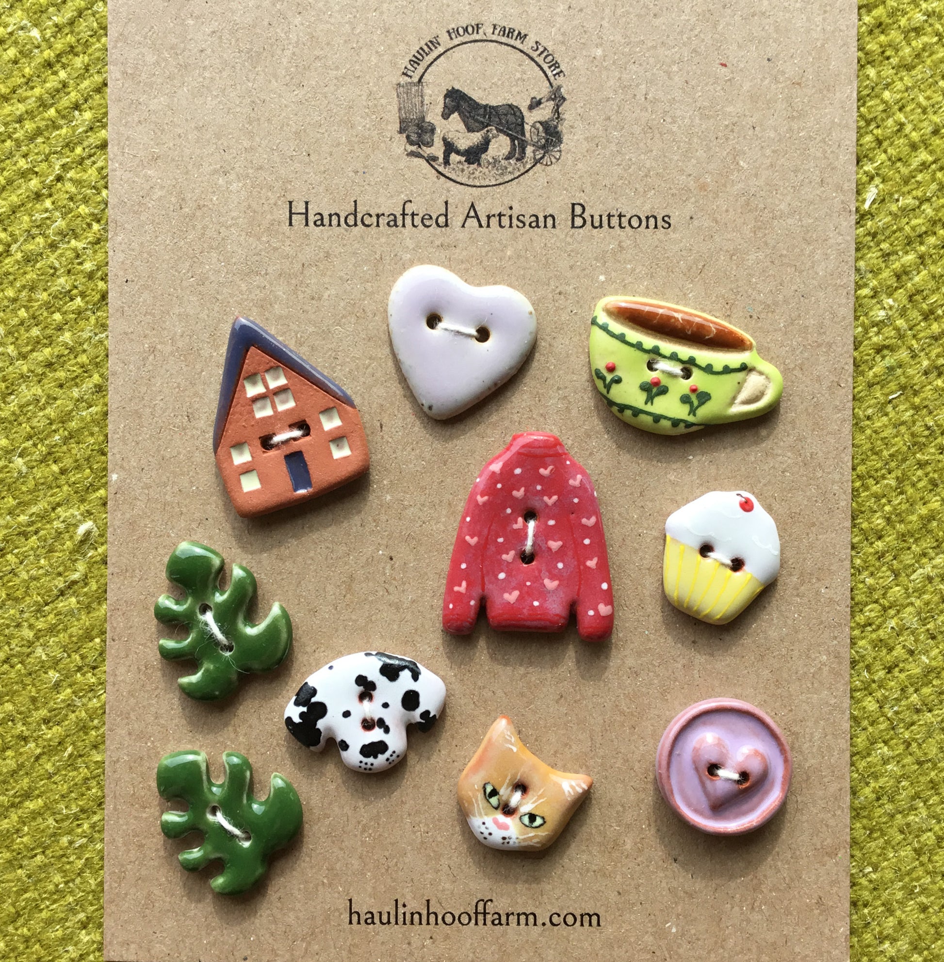 Add a fun mix of ceramic buttons to your stash with these cozy theme button packs - each specially curated with the maker in mind. Each pack is a combination of one-of-a-kind buttons and some you'll recognize from our current website offerings.