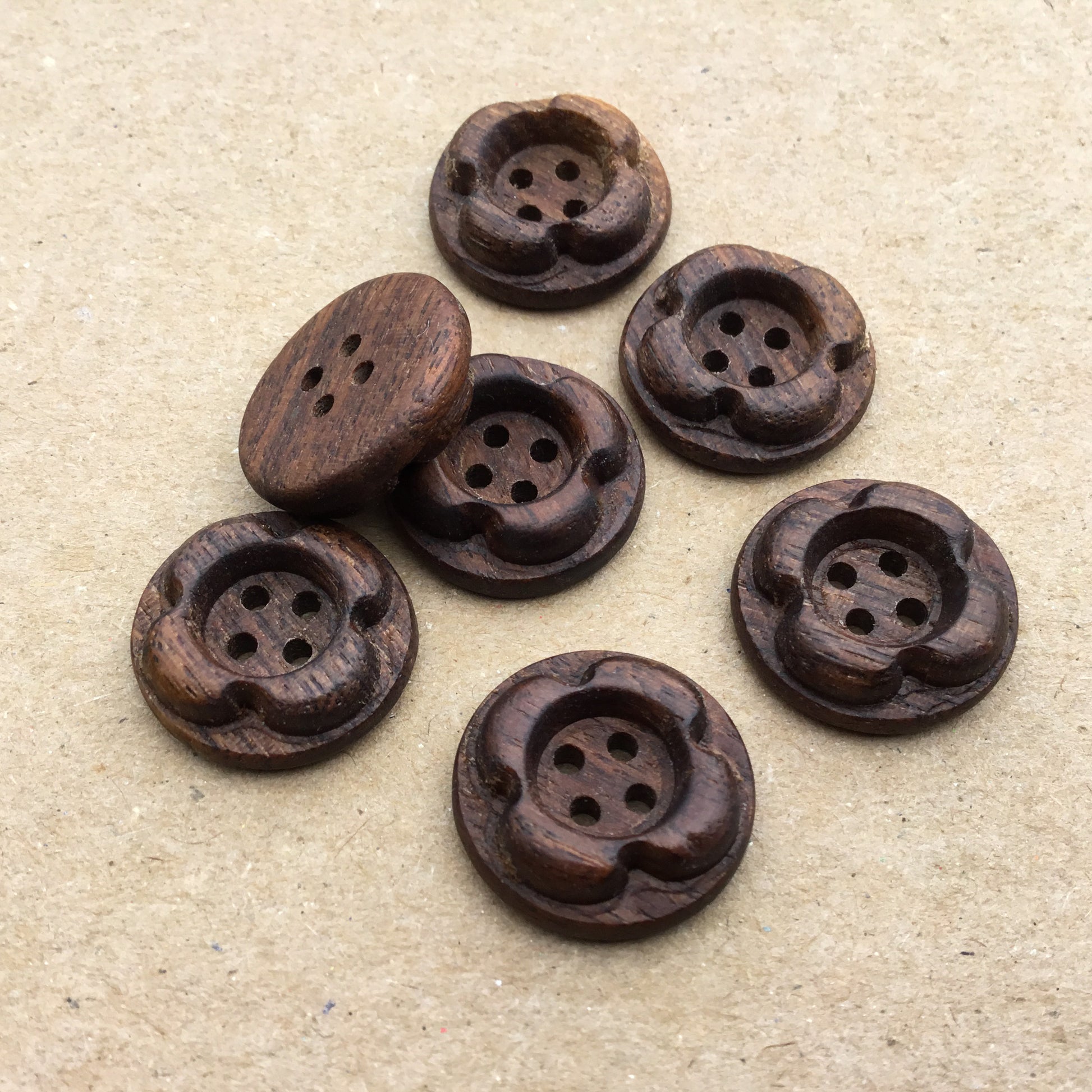 ‘Forest Flowers’ Black Walnut Wood Buttons 3/4”
