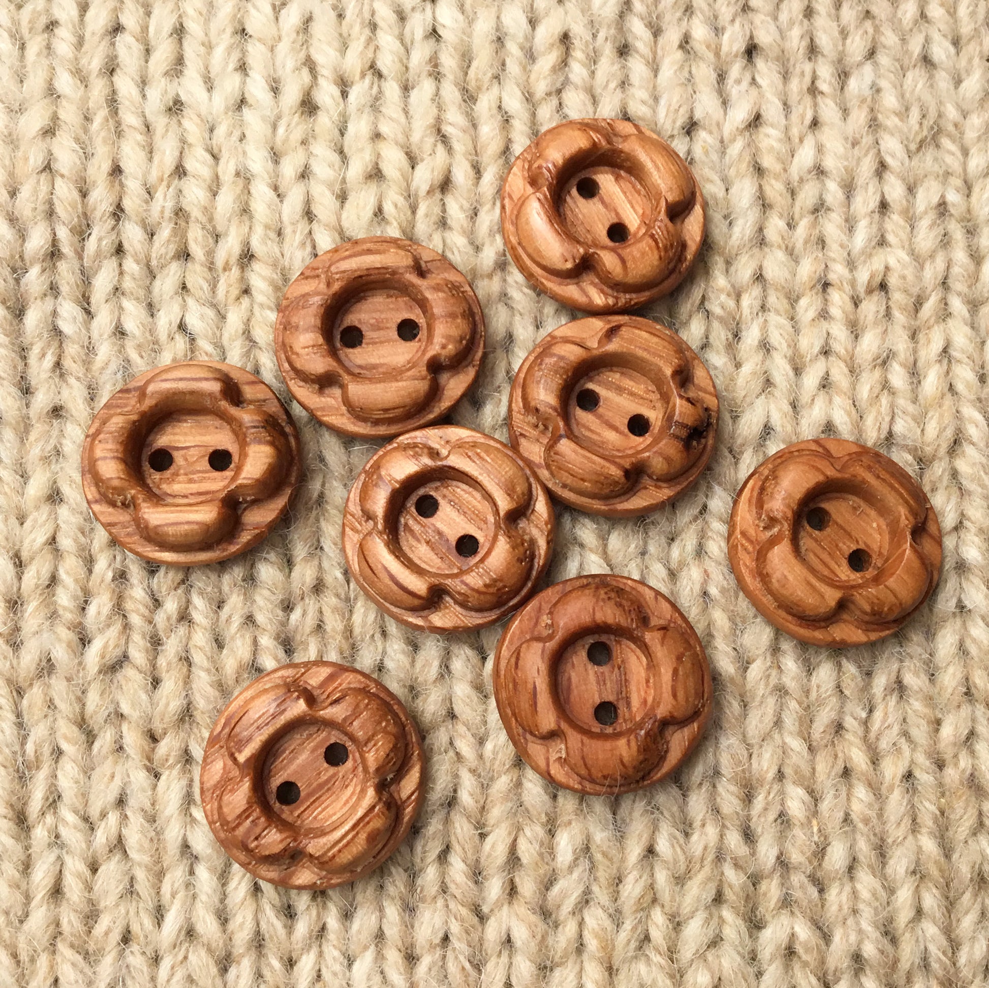 These charming flower buttons are made from red oak that's been sustainably harvested, dried, and processed on our family farm in Ohio. They're sure to add a sweet and earthy touch to any project!