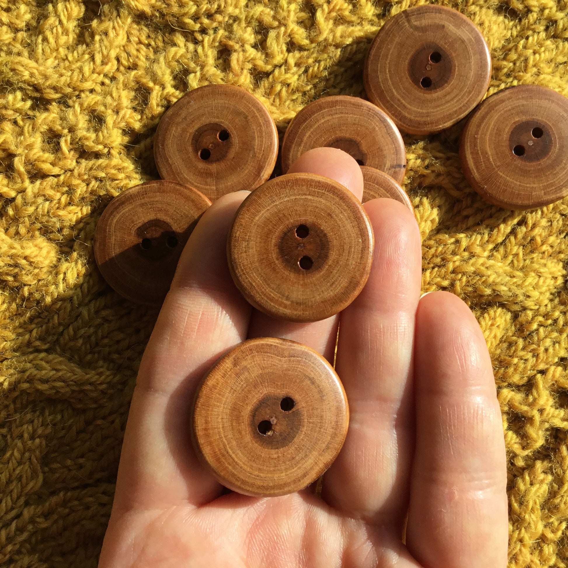 Natural wooden buttons made from locally and sustainably harvested cherry wood. Made on our family farm - from tree to button!